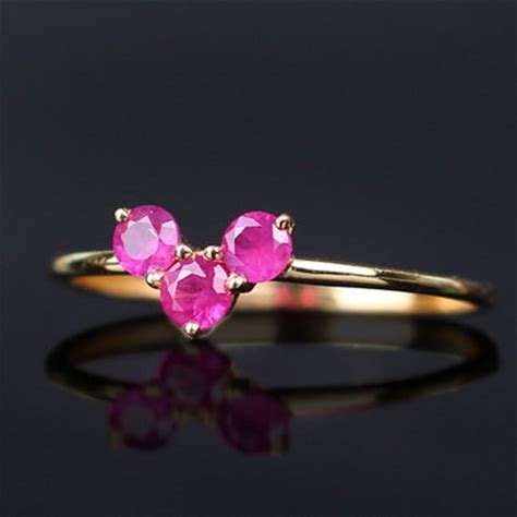 Minimalist Ruby Trilogy Ring For Woman 14K Yellow Gold Ruby Red Gemstone July Birthstone Valentin Day Gift Ring, Teenager Gifted Ruby Ring.