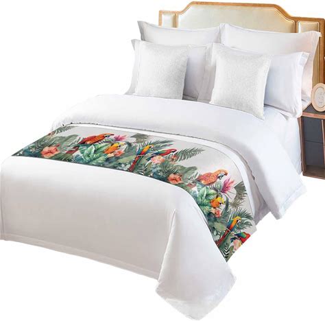 71"X20" Bed Runners Scarf,Summer Tropical Parrot Palm Leaf Hotel Bedding Runner Luxury Soft Bed Scarves,Watercolor Floral Green Plants Accent Bedding