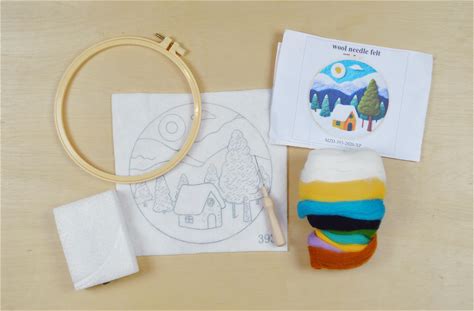 Winter Cabin Needle Felting Kit - Wool Art Craft Kit Hoop Art Fiber Art - Beginner Craft Kits