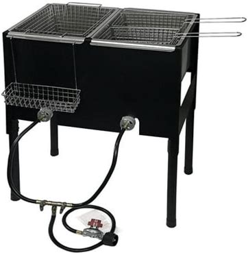 Barton Dual-Tank Propane Deep Fryer 3.25 Gal (13QT/52-Cup) Per Tank With Triple Fry Baskets, Commercial/Home Outdoor Deep Fryer With Stand, LP Hose, R