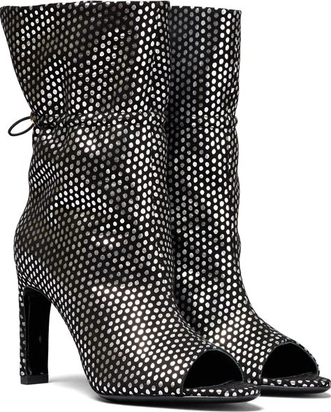 Women's Black High Voltage Heeled Open Toe Ankle Booties In Stardust Silver Lamé | 7 Uk | Il Fratellino