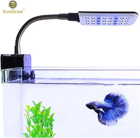Sungrow Small Rimless Aquarium Betta Fish Tank Clip On Light With Blue & White LED, Up To 10-Gal