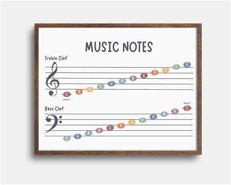 Music Notes In Treble & Bass Clef On Staff, Learn To Read Music Notes, Beginner Piano Learning, Music Wall Art, Printable Music Notes Poster