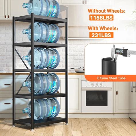 REIBII 5-Tier Bookshelf Steel Wire Shelving With Wheels 31.5"W Living Room Rack Waterproof Bathroom Storage Shelf
