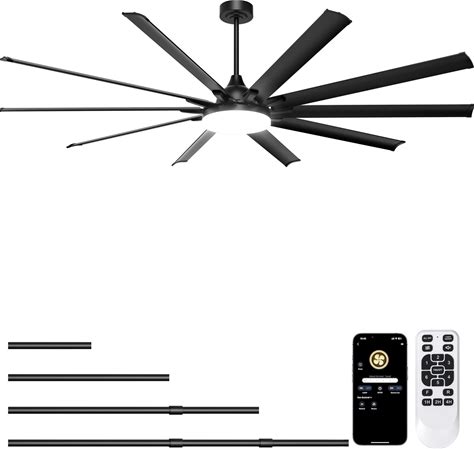 Ohniyou 96'' Industrial Ceiling Fan With Bright Lights - Remote/APP Control, High CFM, Extra Large Shop Ceiling Fan For Covered Outdoor Patio, Gym,