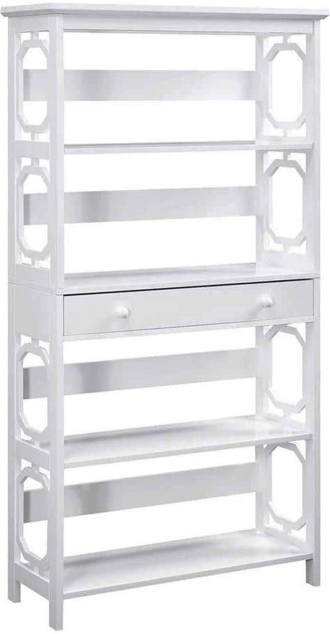 Omega 59.75 in. White MDF 5-Shelf Standard Bookcase With 1-Drawer