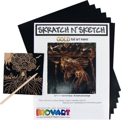Inovart Skratch N' Sketch Gold Foil Scratch Paper, 50 Sheets