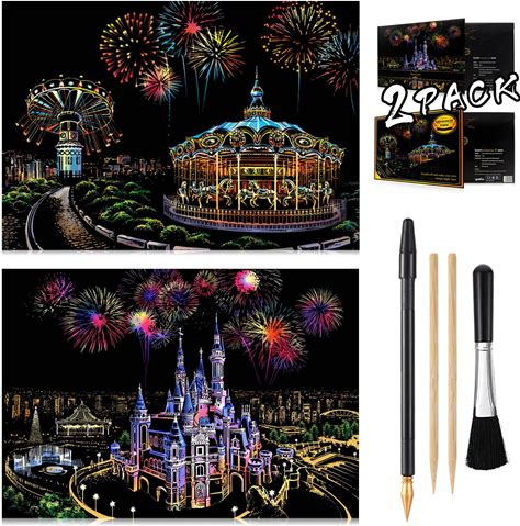 Scratch Art Rainbow Painting Paper, Sketch Pad DIY Night View Scratchboard For Kids & Adults, Engraving Art & Craft Set, Scratch Painting Creative