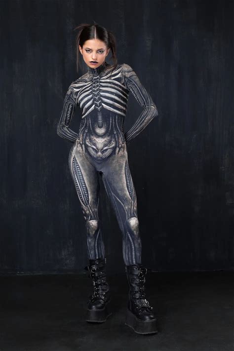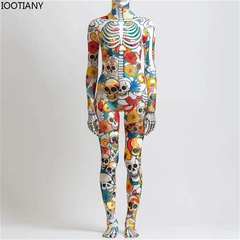 Men Women 3D Machine Skeleton Zentai Bodysuit Punk Jumpsuit Halloween Party Carnival Cosplay Costume