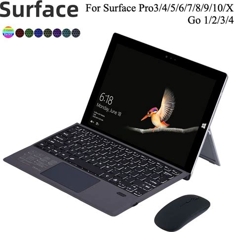 7 RGB Backlit Keyboard For Microsoft Surface Pro 8 9 10 X , Magnetic Keyboard For Surface Pro3 4 5 6