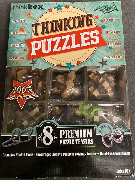 Wooden Puzzles Problem Solving 6 Handheld Wood Puzzles Think Box Thinking Sealed. Think Box. Brain Teasers & Cube/Twist.