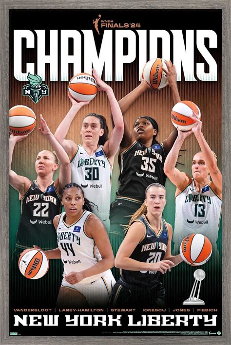 WNBA New York Liberty - 2024 WNBA Finals Champions Wall Poster, 34L" X 22.4W", Barnwood Framed Version