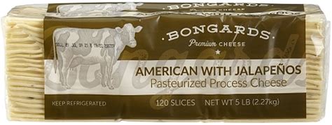 Bongards Pasteurized Process Jalapeno American Cheese Slices, 5 Pound -- 4 Per Case
