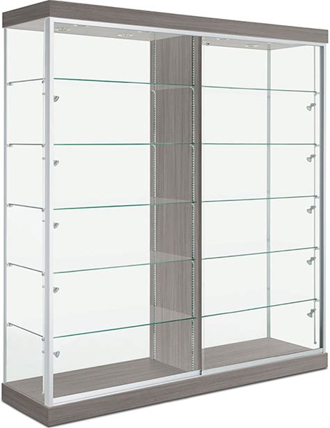 Floor Display Case TD200D, 72"W, LED Lights, Wheels, Solid Back, Concrete / Black
