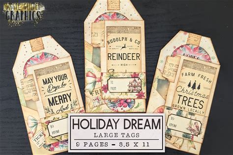 Christmas Junk Journal Kit Holiday Dream Tags | Gift Tag Junk Journal Ephemera With Video Tutorial | Printable Journal Digital Download