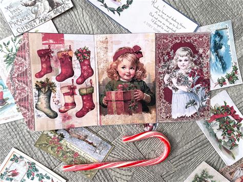 Christmas Holiday Junk Journal Mini Folio Kit Easy Vintage Project Tutorial Download Printable PDF