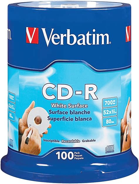 Verbatim CD-R 700MB / 80-Minute 52X Write-Once White Printable (100-Pack Spindle) 95252